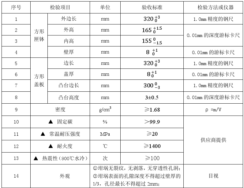 生產(chǎn)高能電池的方形石墨匣缽檢驗(yàn)標(biāo)準(zhǔn)